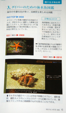 小学館「BE-PAL(ビーパル)9月号」の「HPハンドブック」と言うコーナーで「磯の生物図鑑」をテーマにした時紹介されました。