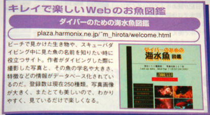 「Mac Fan internet 5月号/6月号合併号」の「ホームページ・ア・ラ・カルト データベース編」と言うコーナーで「キレイで楽しいWebのお魚図鑑」として紹介されました。