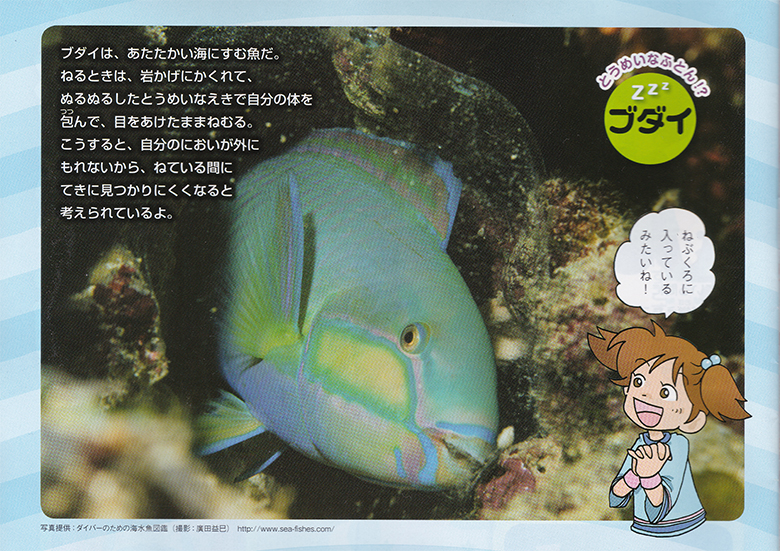 新学社発行「ぴかり!! ポピーっ子情報誌1年 2019年3月号」の「それいけ! はっけん隊」」の特集でブリーカーズパロットフィッシュの写真が使用されました。