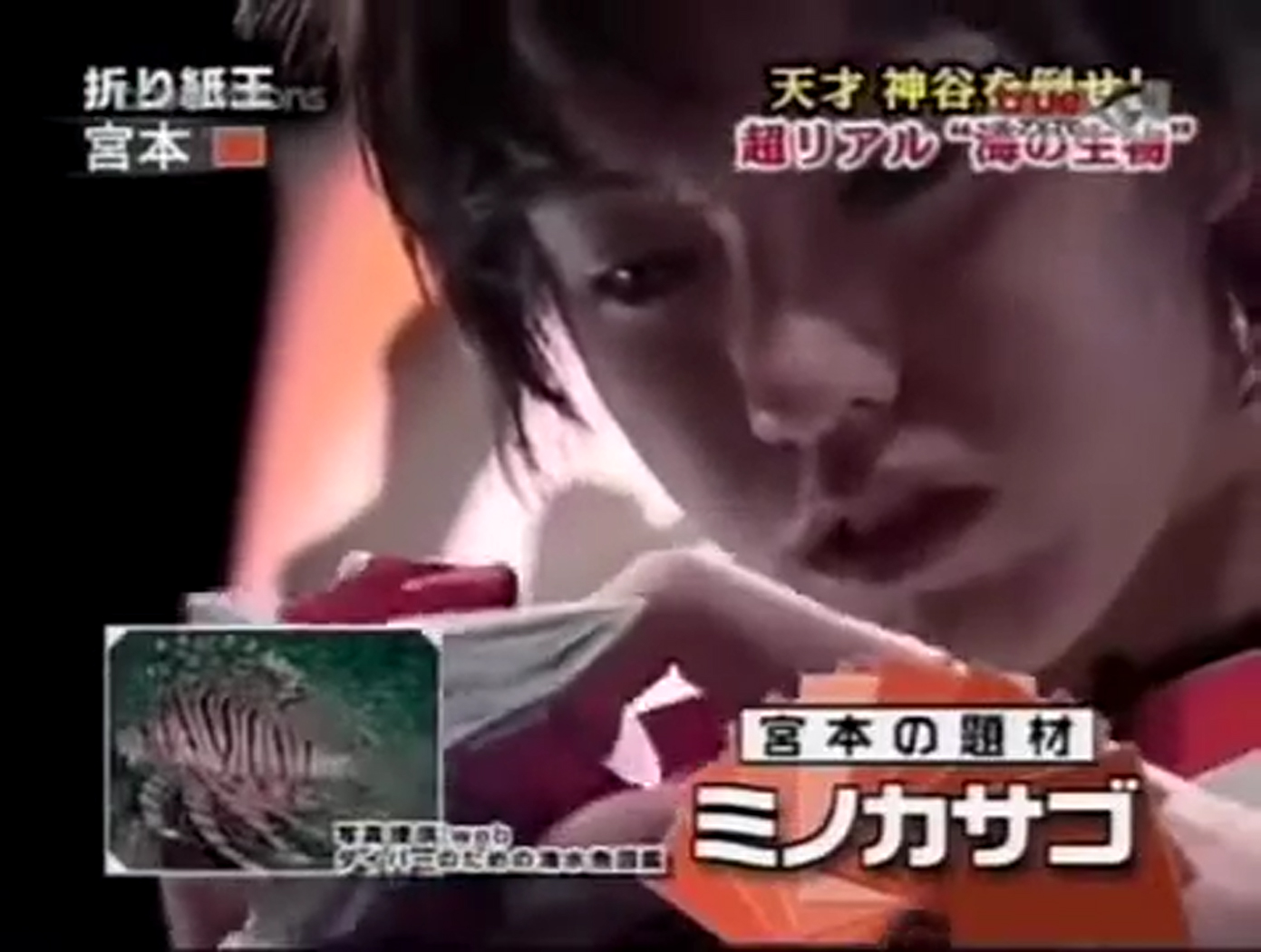テレビ東京の番組「TVチャンピオン2」の「折り紙職人選手権」という企画で、このサイトのミノカサゴの写真を見て折り紙の作品を完成させた方がいて、作品の見本として番組内でその写真が放送されました。